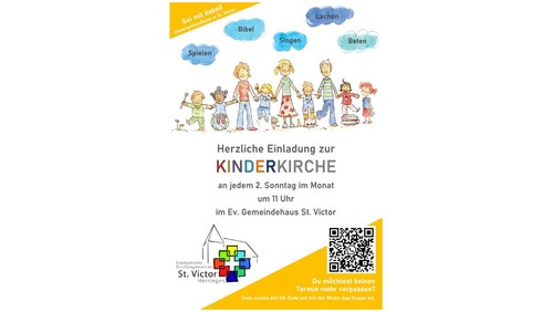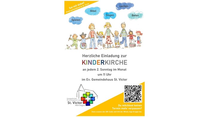 Die Kinderkirche findest an jedem 2. Sonntag um 11 Uhr im Ev. Gemeindehaus St. Victor in Herringen statt (Fangstraße 4).